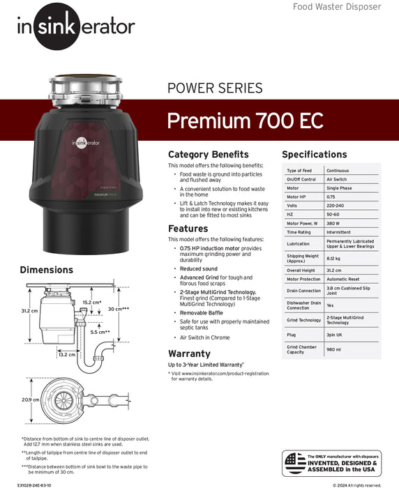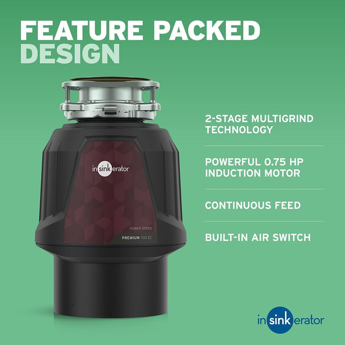The Insinkerator Premium 700 EC offers top-of-the-line waste disposal features for optimal convenience and cleanliness. With its powerful motor and efficient design, this product eliminates waste with ease, making it an essential addition to any kitchen. Say goodbye to clogs and odors, and hello to a more hygienic and efficient cooking experience.